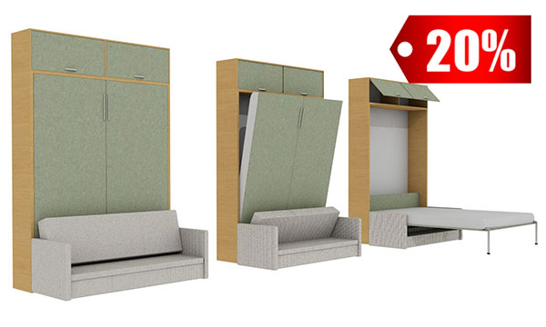 КТ диван 1500V - Двуспальный модуль с вертикальным открыванием кровати с диваном и ортопедическими ламелями. Уникальный,